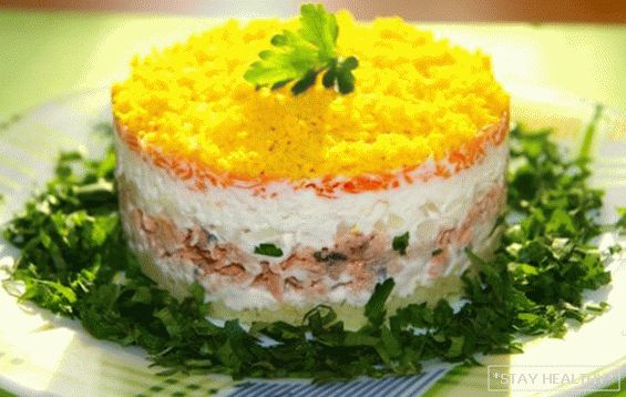 3. Saláta “Mimosa” konzerv hal és rizs